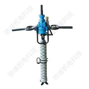 工程上常見的分類是按鑿巖機的支撐方式來分類的1、氣腿式鑿巖機這類鑿巖機的重量較輕,一般在25kg以下,工作時用手扶著操作。氣腿式鑿巖機可以打各種小直徑和較淺的炮孔。一般只打向下的孔和近于水平的孔。氣腿式鑿巖機由于它靠人力操作,勞動強度大,沖擊能和扭矩較小,鑿巖速度慢,現(xiàn)在地下礦山很少用它。屬于此類的鑿巖機有Y3、Y26等型號。